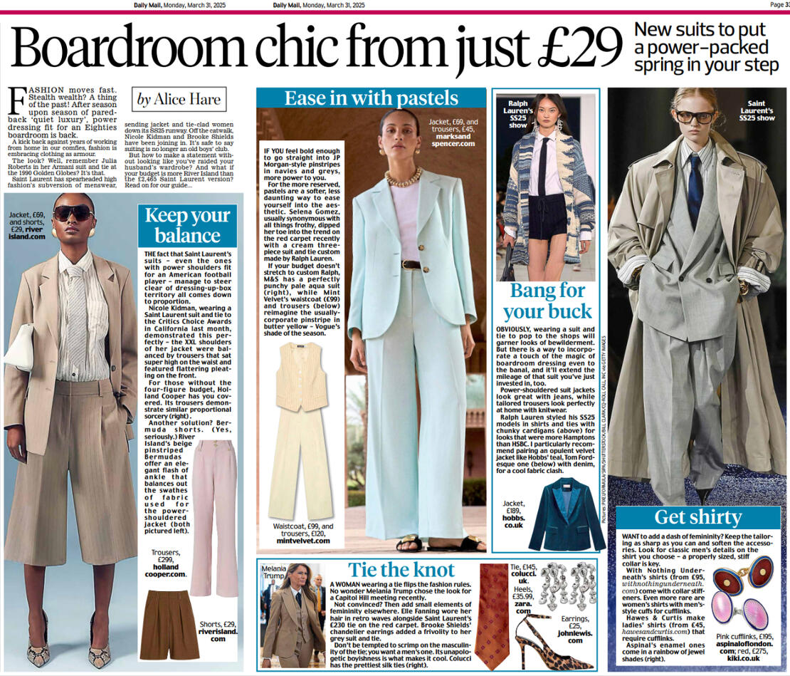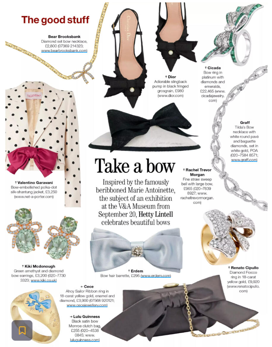 British Vogue, ELLE, Harper’s Bazaar, Grazia, Hello Fashion, The Sunday Times Style, The Sunday Times Magazine, The Telegraph, FT HTSI